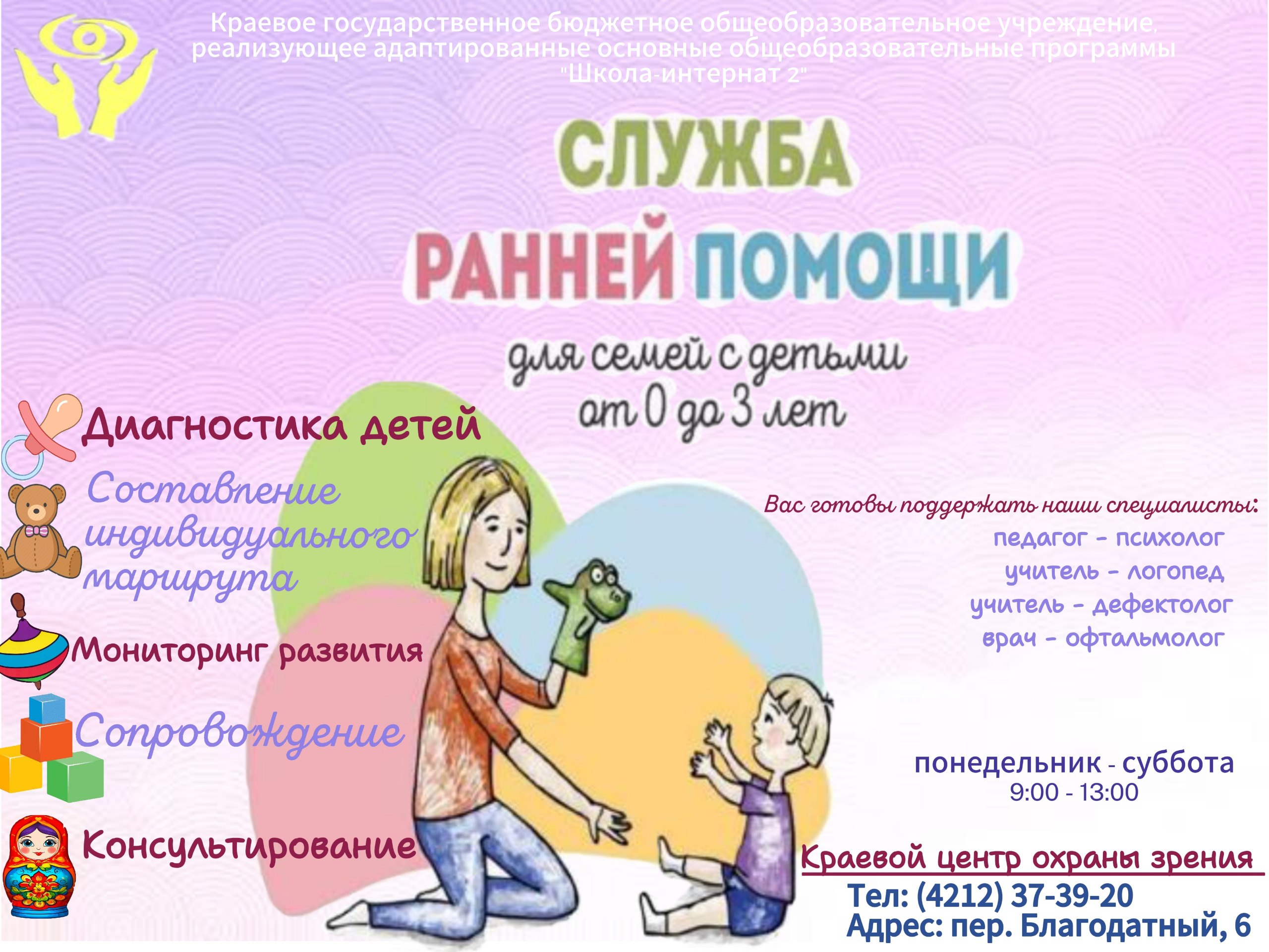 Перечень услуг ранней помощи, оказываемых в Хабаровском крае детям в возрасте от 0 до 3 лет, имеющим ограничения жизнедеятельности, в том чисте детям с ограниченными возможностями здоровья, детям-инвалидам, детям с генетическими нарушениями, а также детям группы риска и их родителям (законным представителям)