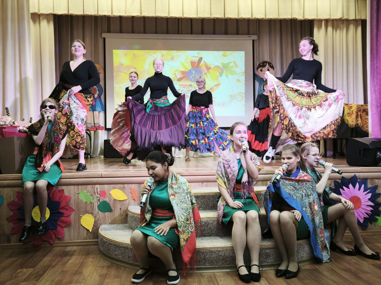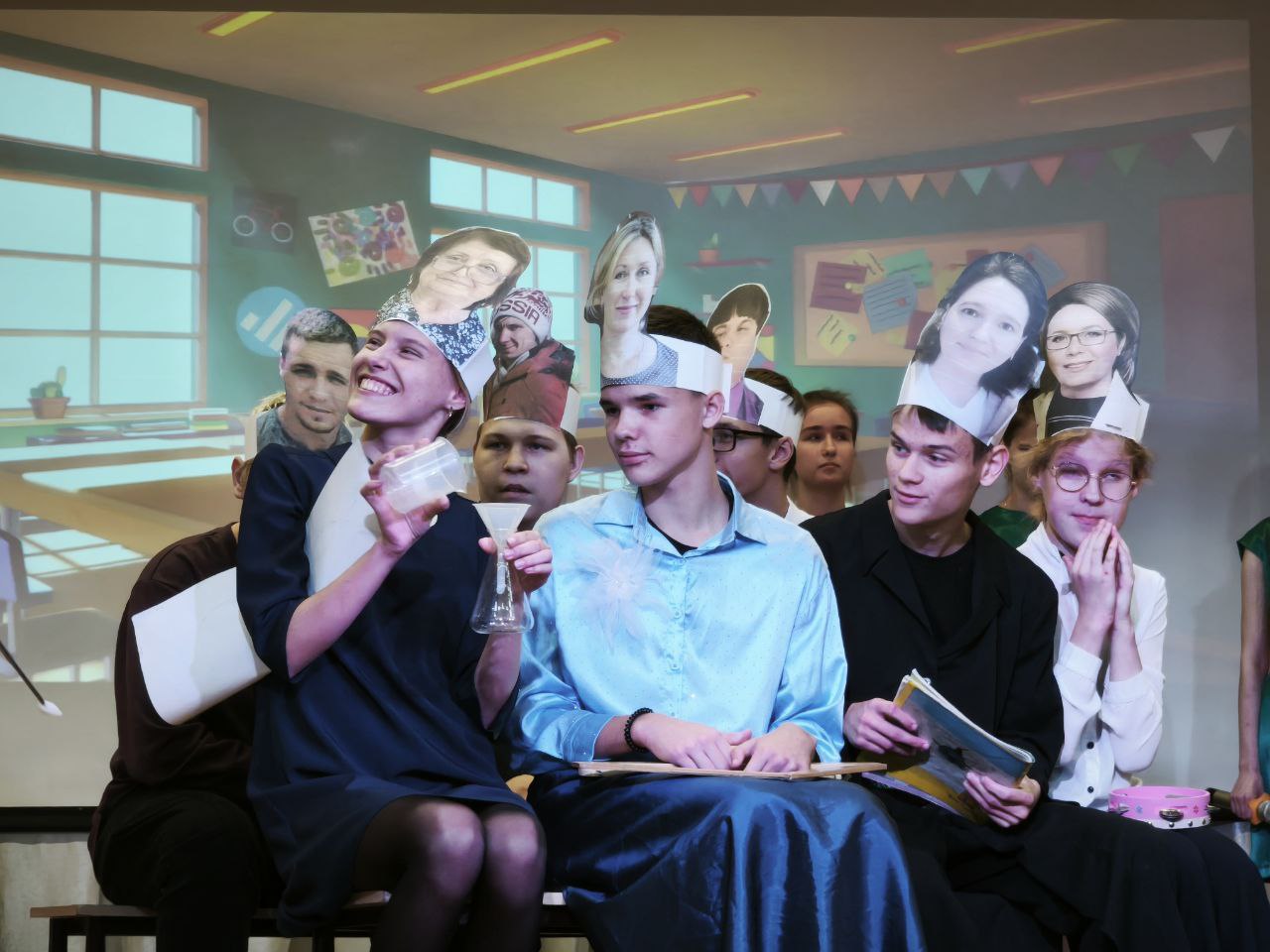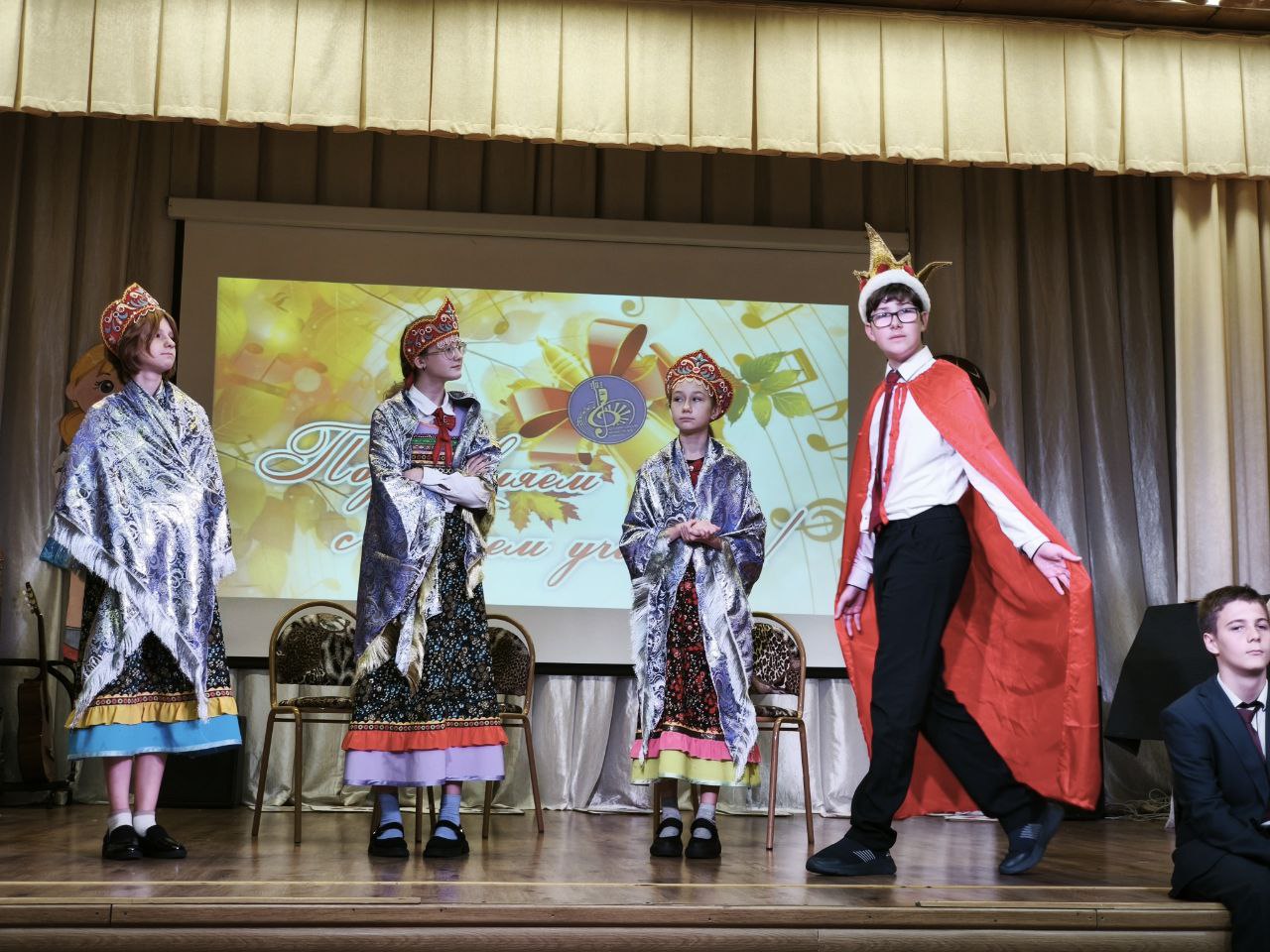 Театральная студия «КЛАССНАЯ КОМПАНИЯ» Духовно-нравственное воспитание подрастающего поколения — это цель, для достижения которой сфера образования и сфера искусства должны действовать сообща. Театральное искусство имеет огромный потенциал для пробуждения души человека к сочувствию, помогает научить активному, деятельному состраданию. Функция воспитания в образовании не менее, а, может быть, даже и более важна, чем образовательная программа. И именно театр здесь может стать хорошим подспорьем в воспитании целостной, гармоничной личности, настоящего гражданина и патриота. Школьный театр — это место, где ребенку предоставлена возможность попробовать себя в разных видах творческой деятельности, что способствует его социализации и самоопределе-нию. Примеряя ту или иную роль, школьники развивают социально-трудовую компетенцию, которая включает в себя владение знаниями и опытом в сфере гражданско-общественной деятельности, в социально-трудовой сфере, в сфере семейных отношений и обязанностей. Цель: преодоление социальных, физиологических, психологических барьеров и позитивная социализация обучающихся, в том числе с ОВЗ и инвалидностью по зрению, через театрально-игровую деятельность. «День учителя-2025»3 октября состоялось театрализованное представление к празднику "День учителя"